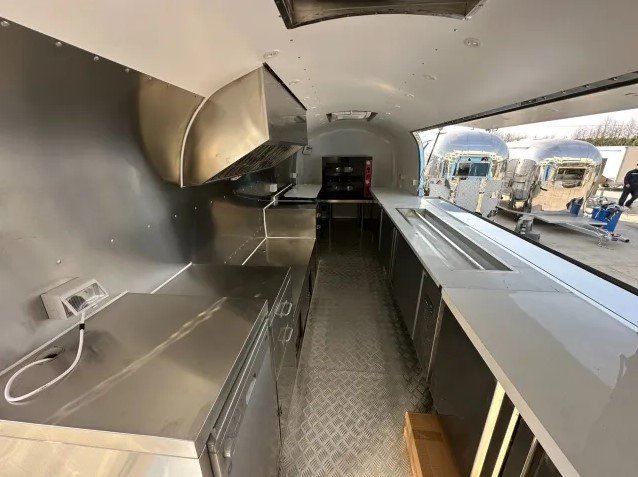 ,Double-layer electric pizza oven,beverage refrigerator (300L), Hoods, stainless steel walls, stainless steel sliding doors, stainless steel drawers*4, dishwasher, salad refrigerator, Workbench Freezer*2,stainless steel table,A/C,3500KG/AL-KO Brake System. Fore Extinguisher , 2x 20L water bottles